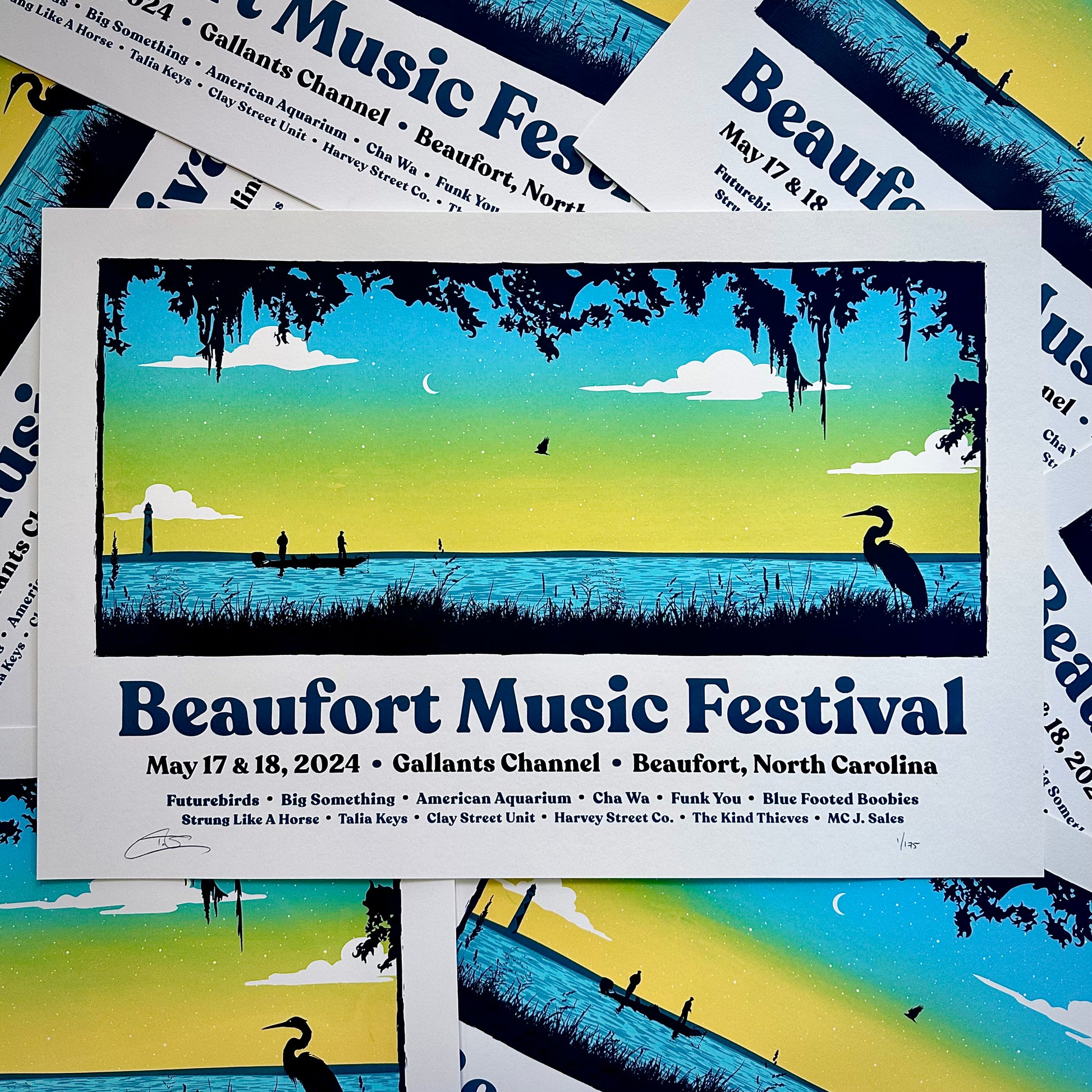 Official print commemorating the 2024 Beaufort Music Festival in Beaufort, NC