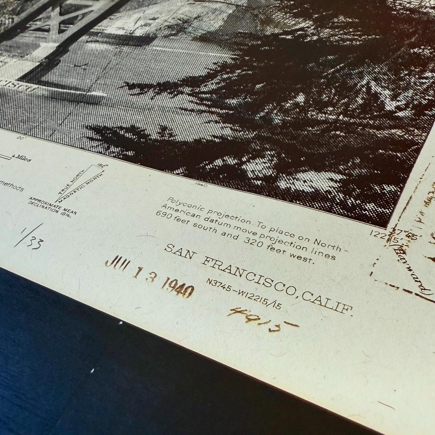 Silkscreen on vintage map of the greater San Francisco Bay Area