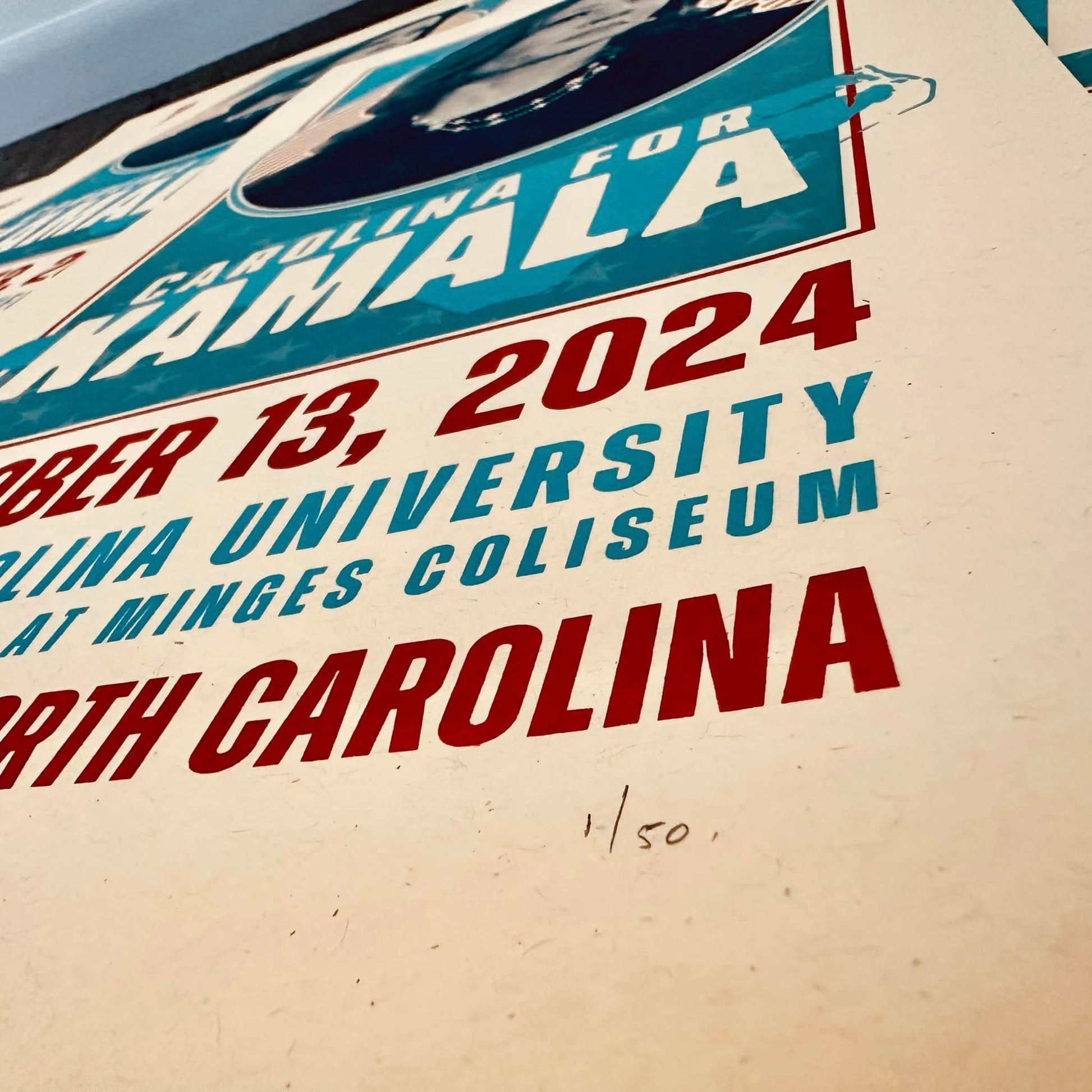 Official 'gig poster' for Kamala Harris's 2024 presidential election rally at East Carolina University in Greenville, NC on 10/13/24.