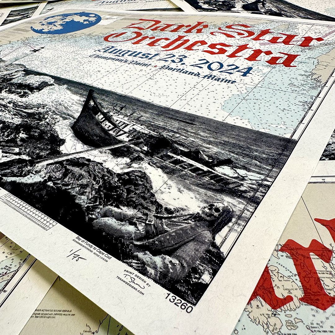 Official print commemorating Dark Star Orchestra's show at Thompson's Point in Portland, Maine on 8/23/24