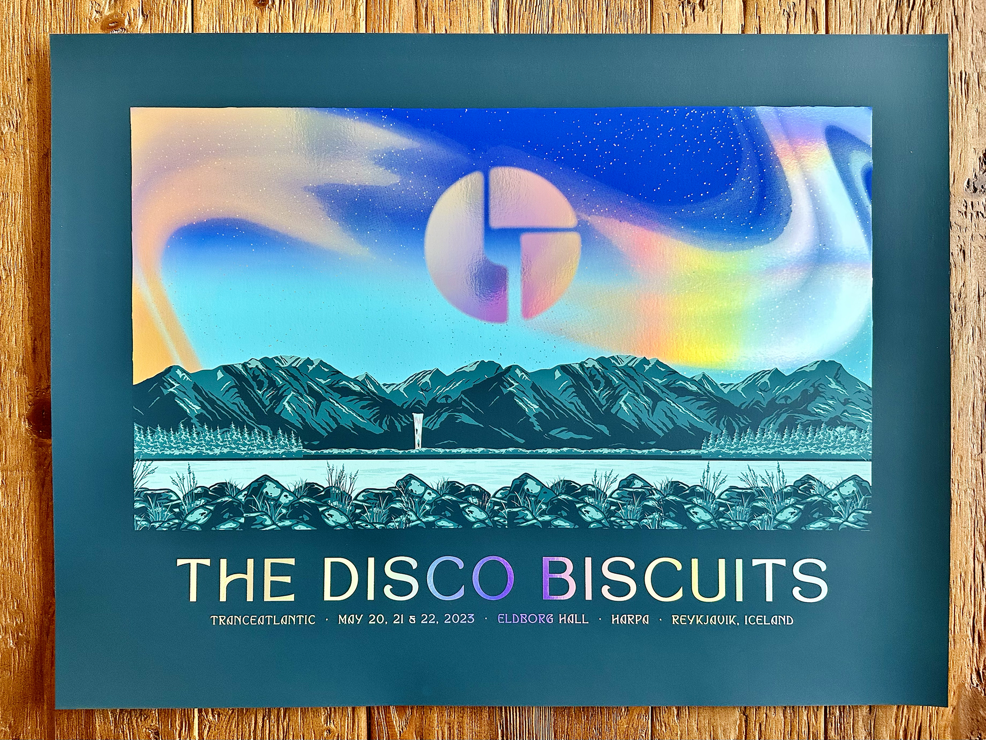 Official print commemorating TranceAtlantic 2023, The Disco Biscuits' 3 night run in Reykjavik, Iceland in May 2023