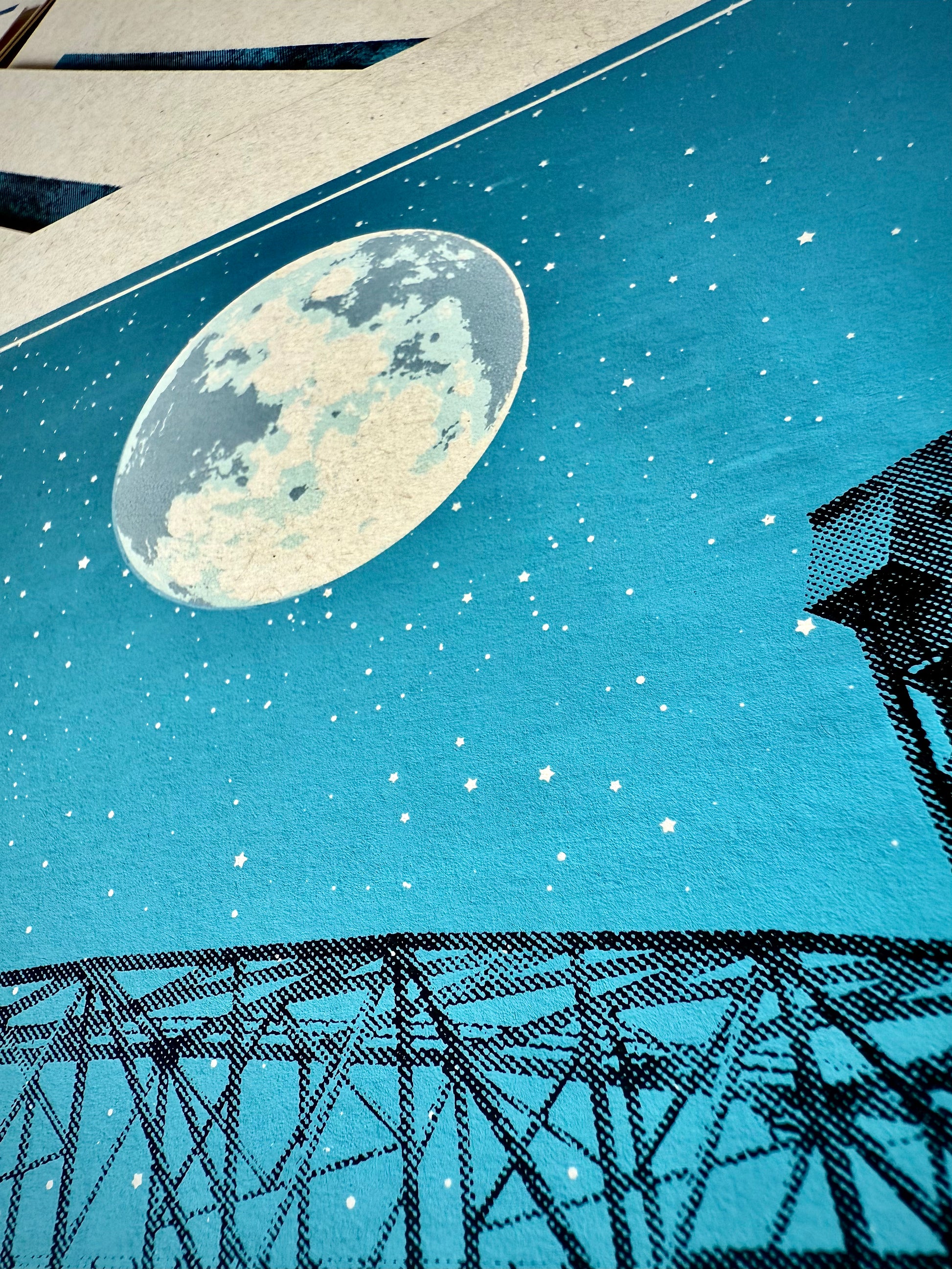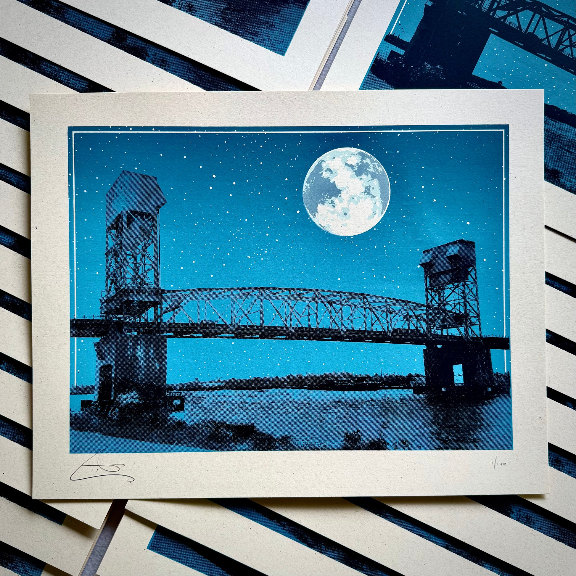 4 color silkscreen with one split fountain featuring Wilmington NC's Cape Fear Memorial Bridge