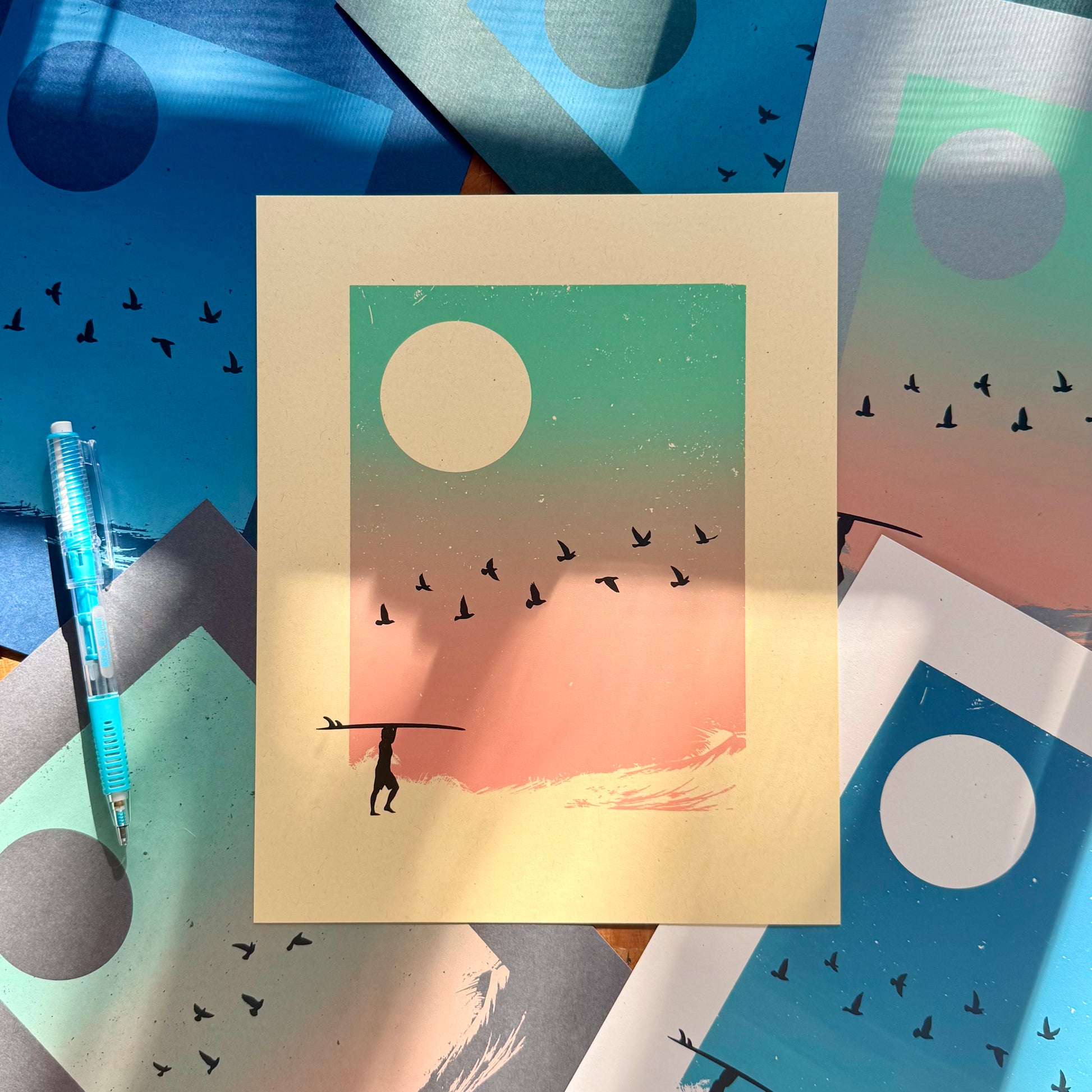 2 color silkscreen on assorted papers
