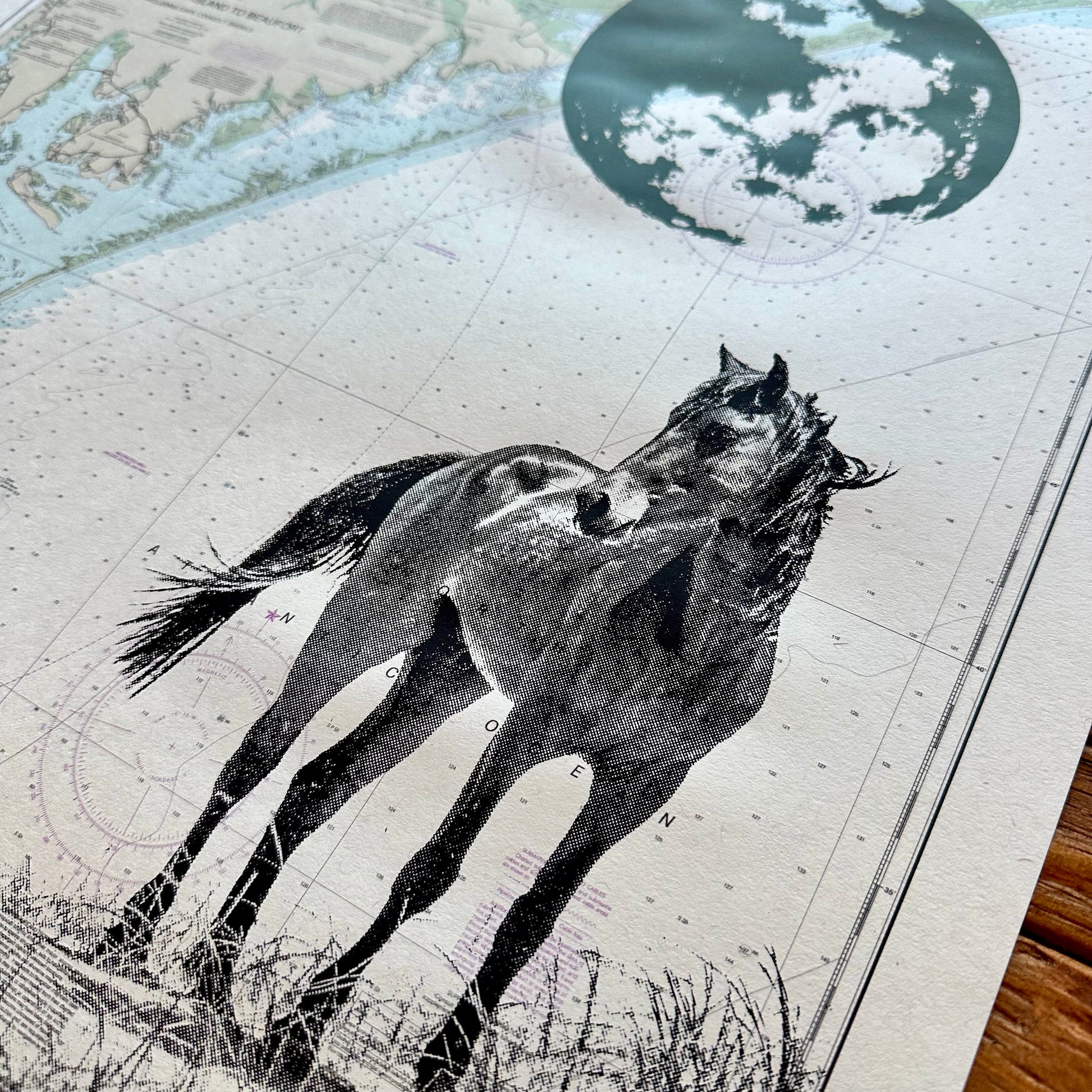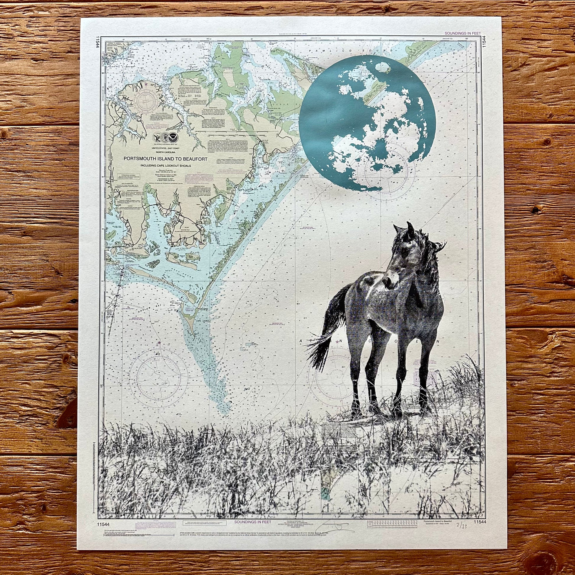 2 color hand-pulled screen print on authentic NOAA chart of the Crystal Coast of North Carolina