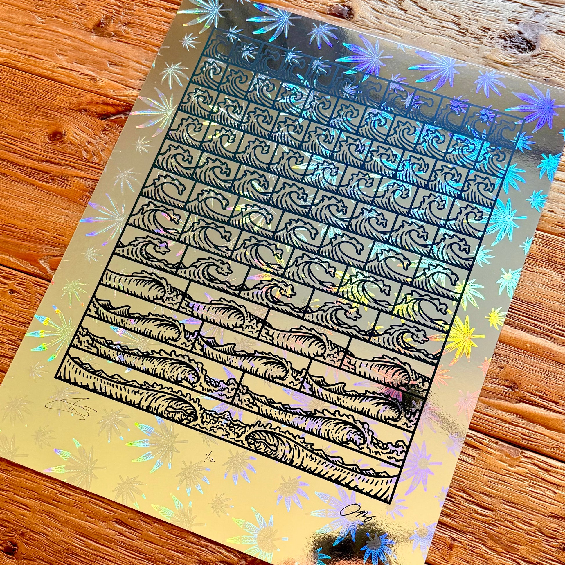 - Keyline Edition of 12 on holographic Cannabis Foil
