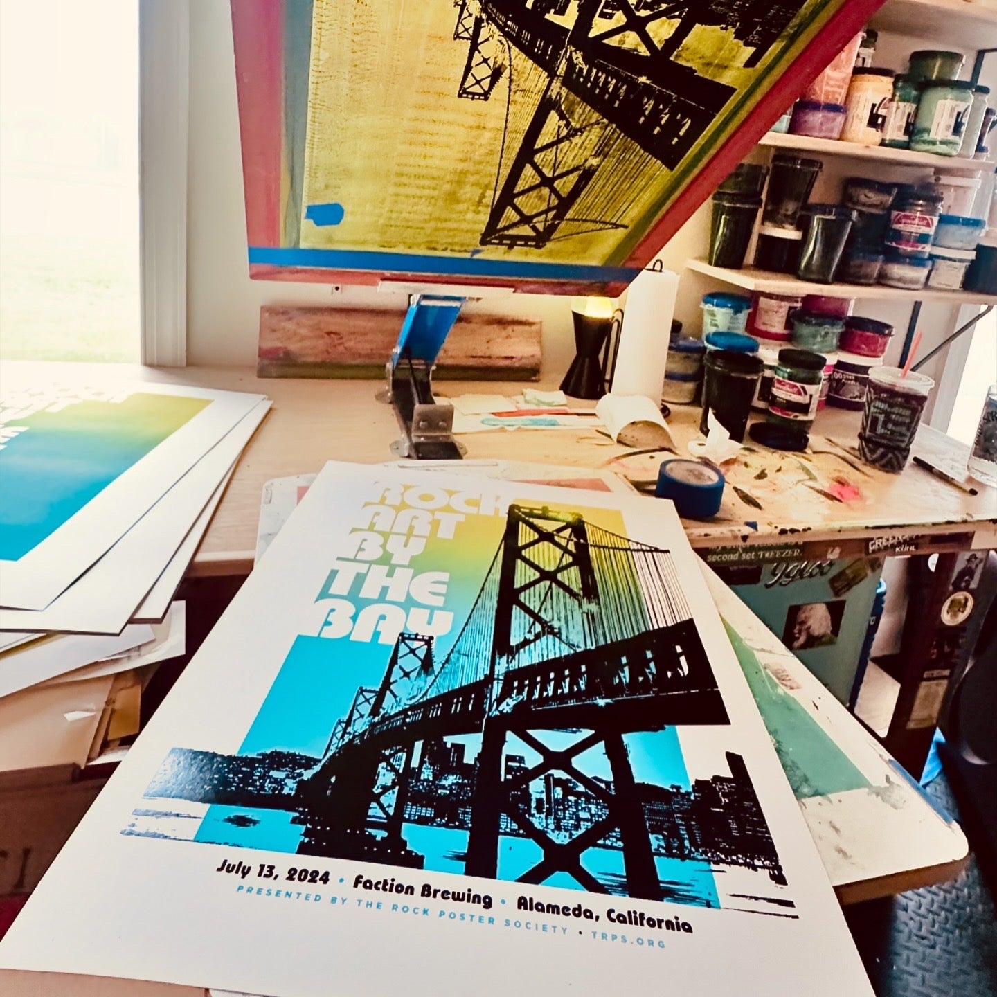 Official print commemorating the 2024 Rock Art By The Bay rock poster show at Faction Brewing on July 13, 2024.